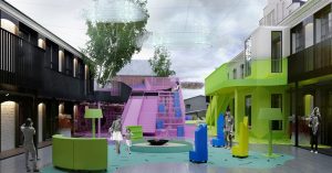 Так называемая событийная площадка будет открыта для творческих инициатив — как резидентов, так и просто горожан. Ее можно будет использовать для лекций, концертов, спектаклей и других мероприятий. Очевидно, место станет точкой притяжения как минимум районного масштаба. Для детей, кстати, оборудуют детскую площадку.