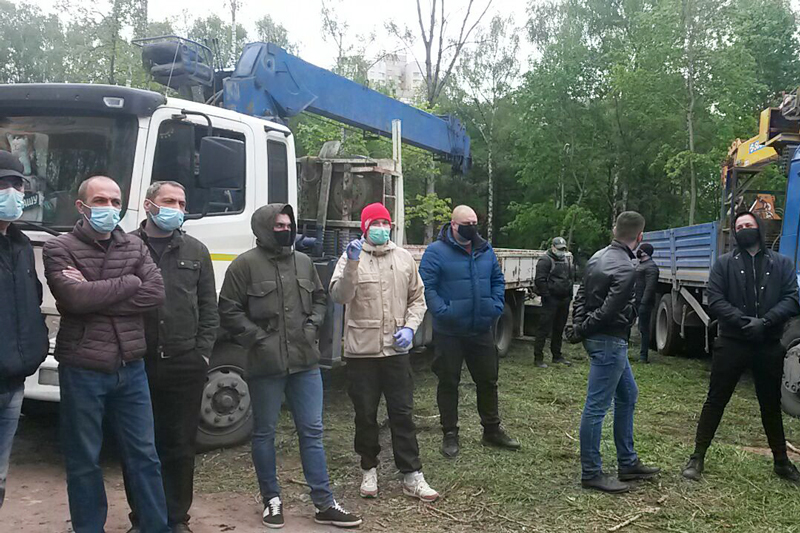 «До середины мая длилась объявленная префектом пауза, — рассказывает Виктор Грехов, — а 16 мая приехали какие-то строители и стали ставить забор. Нам никто ни слова не сказал. Просто приехали с утра, нагнали толпу «титушек», человек семьдесят крепких парней, и все, стали пилить деревья».