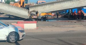 Как сообщает «Газета.ру», судя по фото, мост находился на стадии строительства. Конструкция переломилась пополам и упала на проезжую часть.