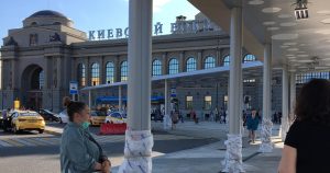 Навес «сухие ноги», похоже, становится одним из главных атрибутов так называемых ТПУ — транспортно-пересадочных узлов. Некоторые ТПУ строят с нуля, а некоторые, как «Киевскую», просто благоустраивают (и не все местные жители этому рады). За последнее время вокзальная площадь заметно преобразилась: там усовершенствовали схему движения, заменили остановки на новые, уложили плитку, куда ж без нее. В общем, привели в порядок, насколько это возможно.
