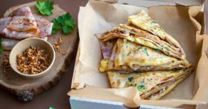 В общем, «Теремок» расправил крылья и решил выпустить свои блины в увеличенном формате — теперь они будут весить около полкило (472–667 г в зависимости от начинки) и станут в два с половиной раза больше. Такие гиганты есть в трех вариантах на выбор: с сыром и ветчиной, «Фермерский» с беконом, картофельным пюре, маринованными огурцами и луком-фри и «Мегаблин» с грибами, сыром и беконом. Но есть один нюанс — такие большие блины можно заказать только на доставку, в меню сети их не будет.