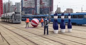 Чем занимаются водители трамваев после работы? Играют в «трамвайный боулинг», разумеется. На самом деле нет. Это не то что вы подумали, а соревнования, на которых водители отрабатывают резкое торможение. Это упражнение и правда называют «трамвайный боулинг» и так тестируют водителей по всему миру, не только в России. Только в отличие от боулинга тут цель не сбить кегли, а заставить их устоять, ведь если ты умеешь хорошо тормозить, то шар даже не сдвинется с места.