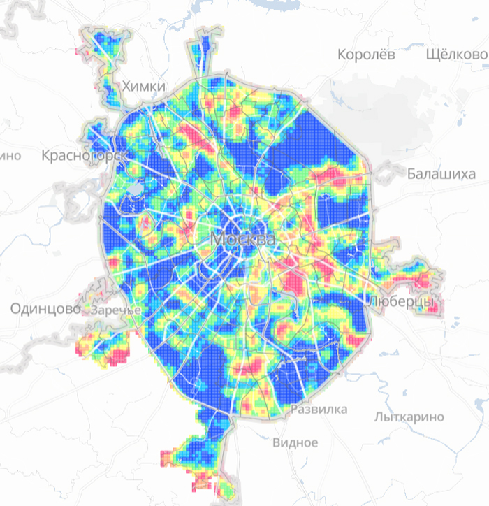 Равно как и многие другие параметры. Например, количество человек на один лифт, от которого зависит возможность заражения — хуже всего с этим в Вешняках на юго-востоке и в Строгино на противоположном конце города; лучше всего — в Нижегородском районе. По площади дворовых территорий в чемпионах Мещанский, Тверской, Хамовники и Измайлово, а также Печатники и Покровское-Стрешнево, а в аутсайдерах — Митино, Косино-Ухтомский и Некрасовка. По доступности парков и скверов в период карантина первые места заняли центральные Арбат и Замоскворечье, а за их пределами — маленькое Марфино, Фили и Ростокино; совсем негде погулять в Нижегородском и Рязанском районах. Больше всего выходящих на солнечную сторону фасадов, внимание, оказалось в Гольяново и Северном Измайлово, Косино и Некрасовке, а также в большом кластере, образуемом территорией Филей, Дорогомилово, Раменок и Гагаринского. Как ни странно, соседний Академический район оказался одним из самых несолнечных — видимо, когда его строили, об этом не подумали.