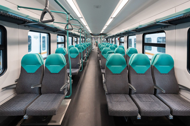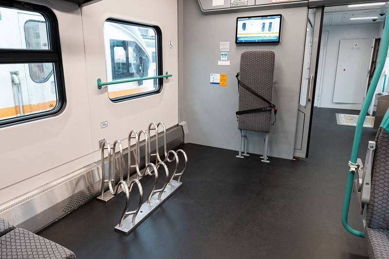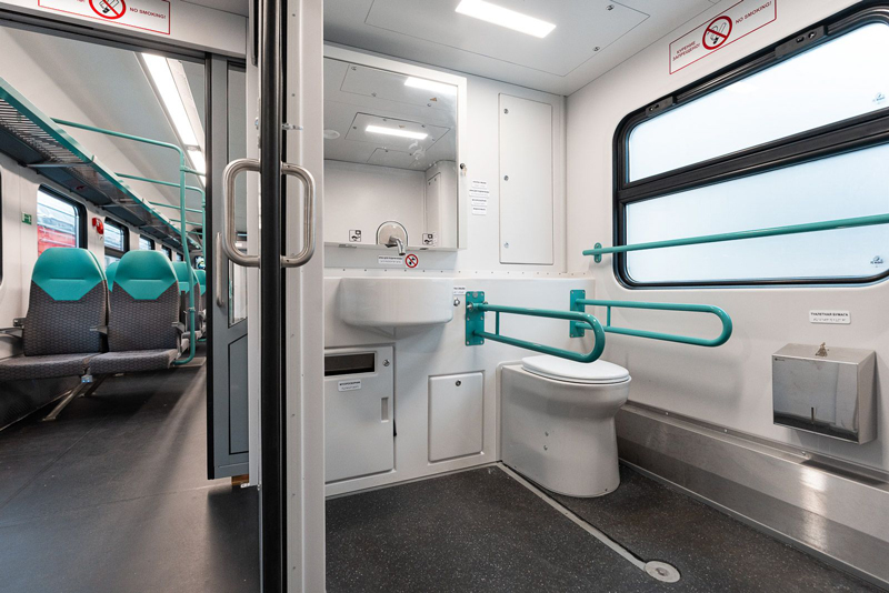 Во-первых, в новых составах изменился дизайн: салон выполнили в мятно-серых тонах, пол сделали практичнее и темнее. Кресла здесь точно такие же эргономичные, как в «Иволгах», с USB-розетками (Type A и Type C). Добавлено больше поручней, а в тамбурах над дверями — табло, чтобы в часы пик можно было быстрее сориентироваться, где выходить. Наконец, проведен и туалетный апгрейд, описание которого уже навевает ассоциации с санузлом добротной трехзвездочной гостиницы: современные сенсорные смесители, дозаторы мыла, сушилки и даже пеленальный столик для пассажиров с детьми.