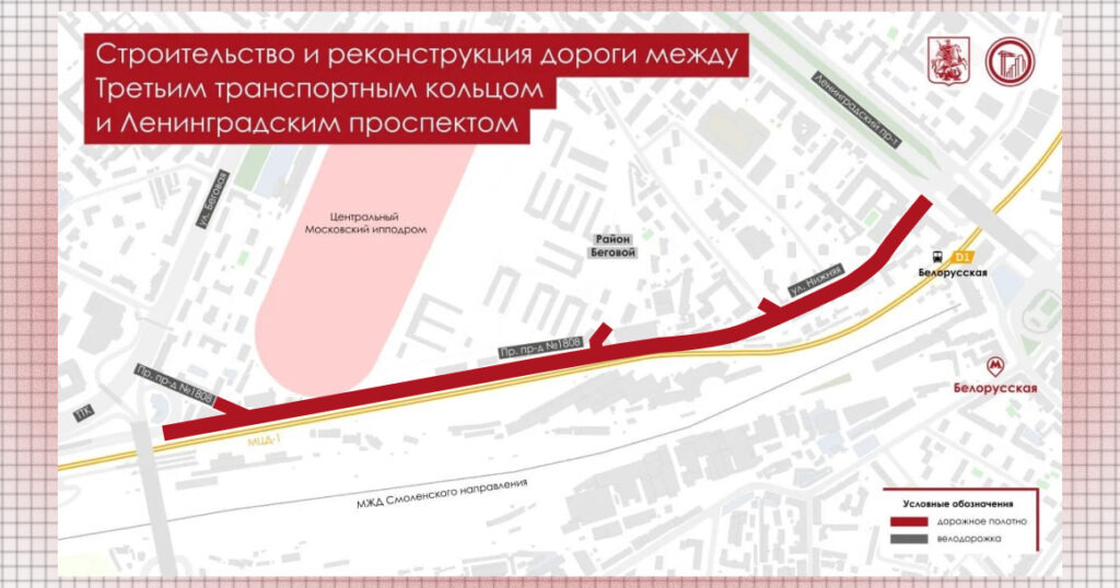 Об этом рассказал мэр Москвы Сергей Собянин. По его словам, новая дорога пройдет вдоль Смоленского направления Московской железной дороги, мимо Центрального Московского ипподрома.
