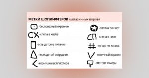 Как пишет канал «Русский ритейл и бизнес», такие знаки работают как подсказки «для своих». Один символ значит, что «охранник бесполезный», другой предупреждает: «лучше не ходить». Есть и более точечные обозначения: «слепа в хлебе», «слепа в пиве» («слепа» — слепая зона), «есть детское питание» или, например, «смотрят камеры».