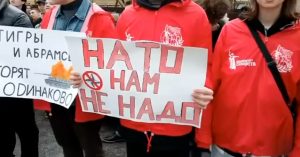На плакатах участников стандартные лозунги: «Стоп НАТО!», «НАТО нам не надо!» и другие подобные. НАТО также обвиняют в заказе убийства Дарьи Дугиной.