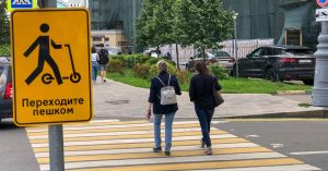 Он призывает самокатчиков спешиваться при переходе проезжей части.