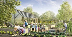 Идея создать в Битцевском лесу сад и огород возникла из-за соседства со старым совхозным яблоневым садом. Кроме этого здесь появятся универсальные спортивные площадки, поле для мини-футбола (зимой на нем будут заливать каток), павильоны проката спортивного инвентаря, раздевалки и, конечно, кафе.