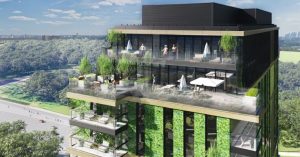 Информации по проекту помимо рендеров и названия пока маловато. Состоять ЖК будет из двух сравнительно невысоких (по 20 этажей) зданий, соединенных стилобатом. Общая площадь — 32 800 кв. м, из которых 19 300 кв. м займут 488 апартаментов «с гостиничным обслуживанием».