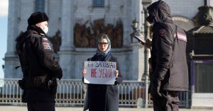 Оказывается, фотографироваться голыми не единственное действие у храма, за которое может задержать полиция. Например, Анастасия Паршкова просто стояла около главного православного храма страны с листом бумаги, на котором было написано «6-я заповедь. Не убий».