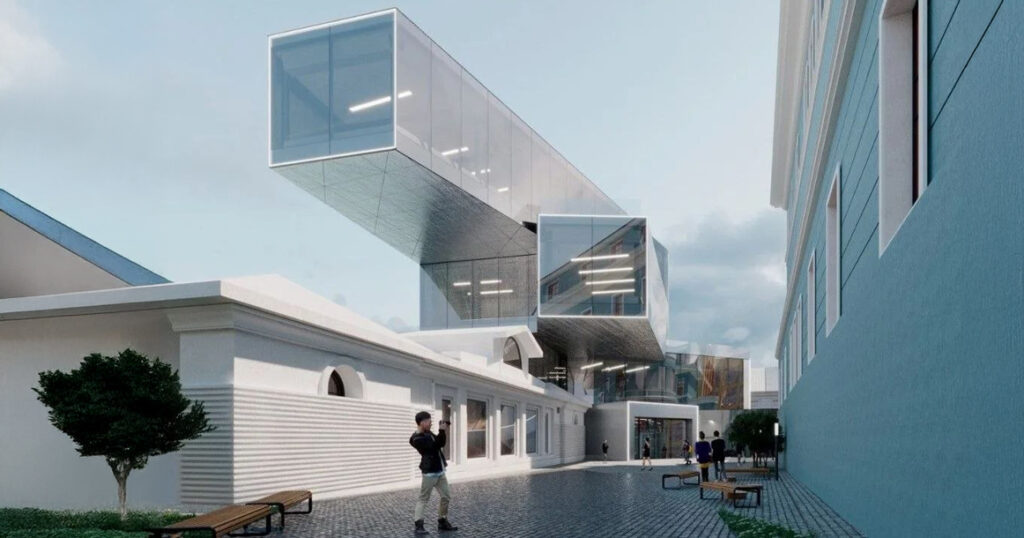 Пятый корпус стилизуют под исторический каретный сарай конца XVIII века, который находился здесь до начала 2000-х. Шестой сделают переменной этажности — от одного до пяти этажей. Внутри разместят мастерские и учебные классы: для скульптуры, живописи, рисунка и теоретических занятий, часть помещений будет с выходом на террасу.