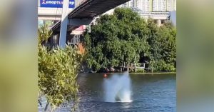 В жаркие дни самые смелые горожане решили развлечься не самым законным способом — прыжками с моста в Москву-реку (глубина в том месте позволяет). На видео, присланном очевидцами в телеграм-канал «ВПОЙМЕ», двое мужчин один за другим совершают рискованный прыжок с высоты в воду.