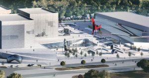При этом — по крайней мере в представленном проекте — единый депозитарий выглядит отнюдь не как складской комплекс. Скорее наоборот — мультимедийные экраны на части зданий, эксплуатируемые крыши, арт-объекты на территории намекают, что и сами запасники будут принимать посетителей (как это происходит, кстати, в депозитарии Эрмитажа «Старая деревня» в Петербурге) и работать как еще одно учреждение культуры. Благоустройство доберется и до здешних общественных пространств — тут сделают игровые площадки, небольшую сцену для уличных представлений, разместят лавочки. Появятся и элементы инфраструктуры, явно нацеленные на создание здесь точки притяжения — культурно-досуговый центр, административные и технические помещения, экспозиционные пространства и торговые галереи.