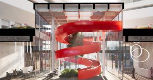 В последнем проекте остались и жилая, и офисная части. Архитекторы представили несколько башен, которые, согласно параметрам застройки, должны ограничиться высотой 190 метров. У высоток интересные детали: они как будто стоят на элегантных ножках, а верхушка одной из башен (той, что пониже и пошире) отделена от основного объема здания открытой террасой. Также предусмотрено благоустройство вокруг комплекса, в том числе и во внутреннем дворе.