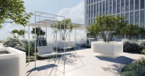У нового бизнес-центра на площади Гагарина появятся «уличные офисы» с качелями
