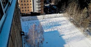 У общежития МИЭТ на снегу вытоптали число пи до 71-го знака после запятой