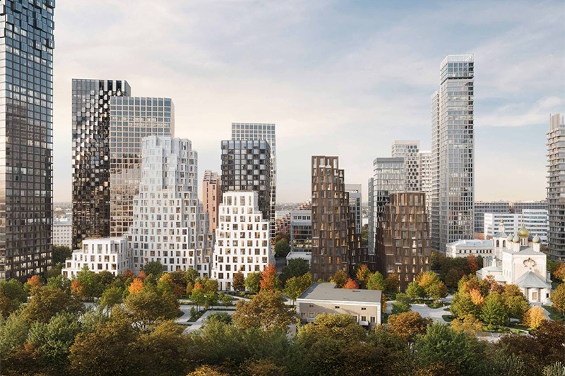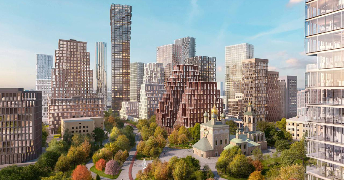 Небоскребы, согласно проекту, планируют разместить внутри большого зеленого парка, в центре которого храм Троицы Живоначальной в Кожевниках (1625 года постройки).