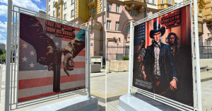 У посольства США в Москве появились плакаты с призывом «освободить рабов»