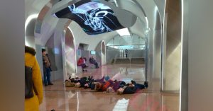 Открывшаяся вчера Большая кольцевая линия наделала много шума. Там уже даже успели сыграть свадьбу в движущемся поезде. А еще на станции «Рижская» открыли очень красивый арт-объект в виде ковра-самолета. Он настолько привлекает внимание изумленных пассажиров, что они буквально не могут устоять перед ним. Забыв о том, что им надо домой или на работу, они лежат на полу, зачарованные танцующими цветными узорами. Фото и видео с ними публикуют в соцсетях.