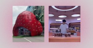 Один из павильонов выполнен в виде огромной клубники, которая завалилась в деловой центр «Москва-Сити».