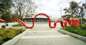 У станции метро «Улица 1905 года» установили змеевидный арт-объект. Это световое пианино