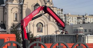 Возле храма заметили много металлических ограждений. Их пока не успели расставить по территории, но уже к утру, видимо, из них будет создан коридор для посетителей храма. Возле входа дежурят полицейские машины, а еще там стоит автомобиль с дипломатическим номером США.