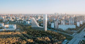Вообще это не первый проект на эту площадку возле ландшафтного заказника. Уже публиковалось несколько проектов: были и классические тонкие башни от бюро «Остоженка», и здания в форме мутировавшего тетриса от бюро Сергея Скуратова.