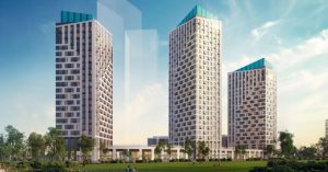 Три корпуса высотой от 20 до 26 этажей объединят в единый ансамбль через общий стилобат, где разместятся коммерческие и общественные пространства. Всего в них спроектировано 539 квартир.