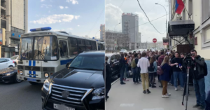 У здания Басманного суда, где слушается дело редакторов журнала DOXA, собралась толпа
