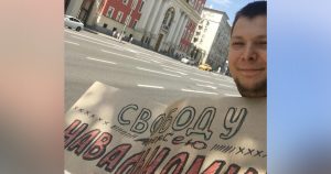 У здания правительства Москвы задержали активиста Симачева с плакатом «Свободу Алексею Навальному»