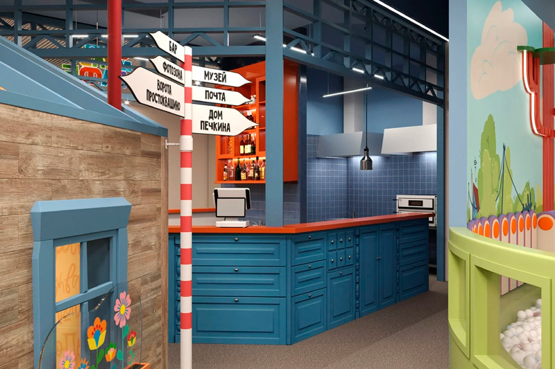 Интерьер выполнен в стиле «Простоквашино». Что этим хотели сказать авторы, непонятно: раньше все ездили на каникулы в деревню, а теперь летают по Таиландам и Турциям? Создатели говорят, что одна из целей проекта — приобщать к нашей мультипликации и гостей из других стран.
