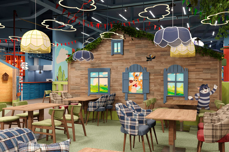 Меню в «Союзмульткафе» незатейливое, но с отсылками: «Правильный бутерброд», салат «Царь Печкин», «Простоквашбургер» и другие блюда. Вход в детскую комнату стоит 2 тыс. рублей без ограничений по времени.