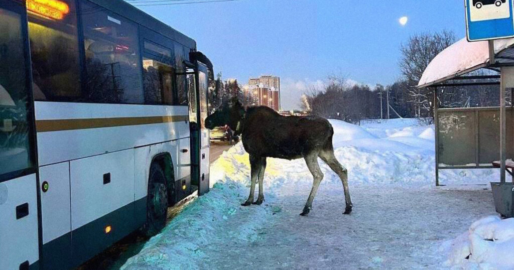 С чем связано необычная тяга сохатых к социализации, остается только гадать. Может, аномальные морозы доканали даже их и им захотелось погреться? А лось-путешественник наверняка уже где-то слышал о проблемах с МЦД вчера и позавчера, так что в качестве транспорта выбрал автобус.