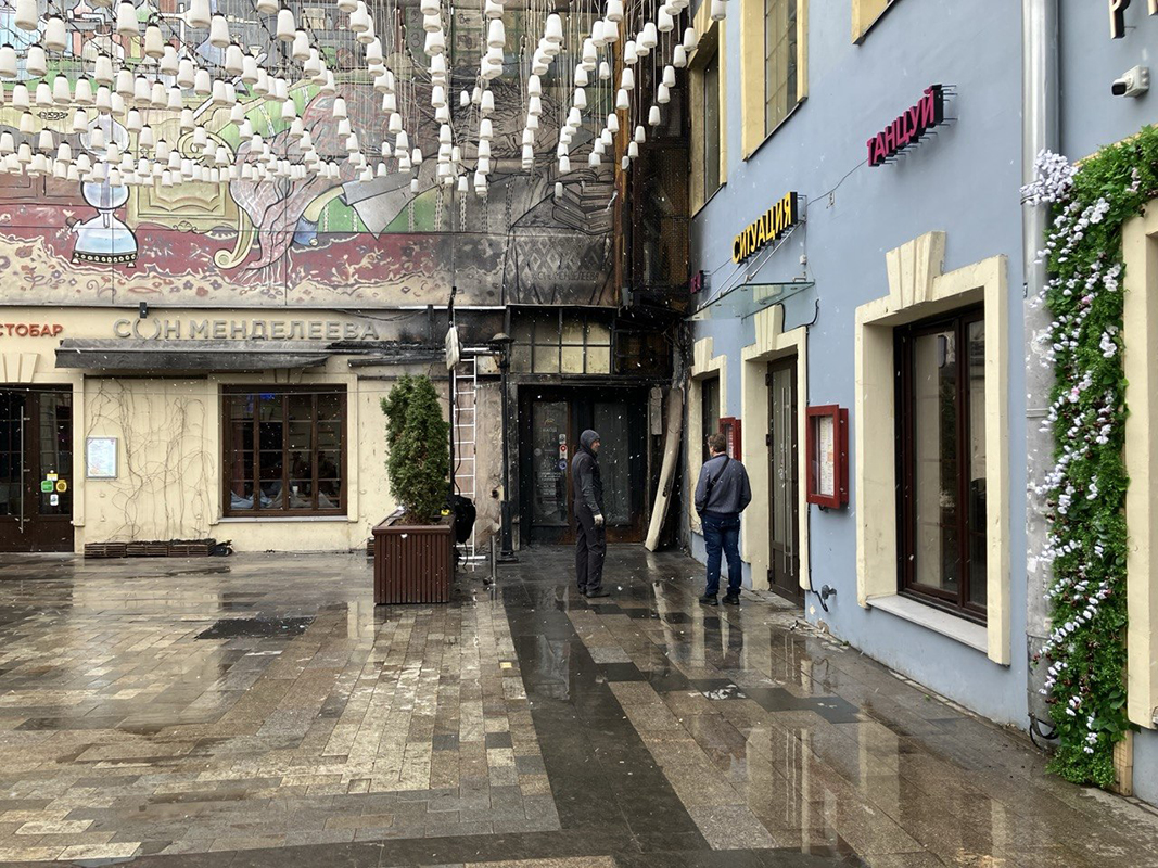 Последствия, впрочем, оказались не такими катастрофическими. Как рассказали нашему корреспонденту утром, кто-то снаружи неудачно бросил окурок, от чего загорелись дверь «Профсоюза» и установленный у входа в барный кластер временный шатер. Все внутренние помещения остались целы, обошлось без пострадавших.