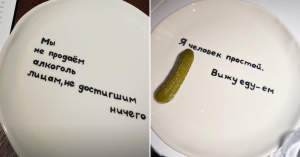 За несколько дней работы можно уверенно сказать, что в сторис в основном мелькает не еда, а посуда с ироничными надписями. «Мы не продаем алкоголь лицам, не достигшим ничего», «Завтра точно на диету» и все в таком духе — посетители в восторге. Но чтобы постоянно держать интерес к заведению, видимо, тарелки придется время от времени обновлять.