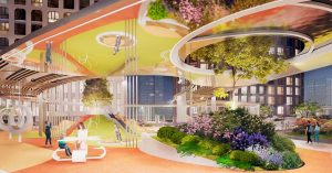 Так назовут внутренний двор, образованный между четырьмя корпусами третьей очереди проекта Nagatino i-Land. А все наполнение двора будет строиться вокруг образа вершины спящего вулкана в гористой местности.
