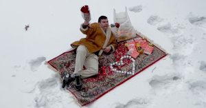 Молодой человек, судя по видео, тщательно все продумал. Он расстелил на сугробах ковер, словно украденный из бабушкиной квартиры (наш ответ Аладдину?), накупил продуктов в «Перике», выложил из свечей сердечко. А потом взял в зубы розу и, размахивая букетом, громко крикнул: «Любимая, я тут!»