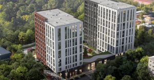 Несмотря на соседство с Даниловским кладбищем, новые квартиры (точнее, апартаменты) «Level Донской» предназначены не для среднего класса. Два невысоких (по нынешним меркам) дома в 12 и 13 этажей объединены общим первым этажом, в котором установили камин и сделали библиотеку. А позже, как показано на рендерах, появятся кафе и магазины. У владельцев квартир на первом этаже будет приватный выход прямо в сад во внутреннем дворе, а в пентхаусе также установят камины (дровяные, как подчеркивает застройщик).