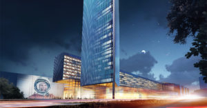 «Это наиболее важная часть всего комплекса зданий. 47-этажная башня высотой более 288 метров со шпилем, с площадью помещений 62 тыс. кв. метров станет градостроительной доминантой запада и северо-запада Москвы», — пояснил он. Гендиректор компании «Мосинжпроект» (которая и занимается реализацией проекта) Юрий Кравцов добавил, что параллельно продолжат работы в низкоэтажной части.