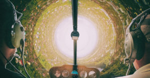 В его вселенной за окнами вагонов метро видно крыло самолета и голубое небо как из иллюминатора. Красно-розовые облака заполняют новые поезда «Москва-2020» — те гусеницы, не разделенные на вагоны, которые москвичи ругают и называют проходным двором. Панельные многоэтажки в наших спальных районах переместились в пустыню и торчат из песочных дюн. Переход в метро со стрелкой «Выход в город» художник сделал похожим на лабиринт — на некоторых станциях и правда можно заблудиться.