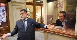 Машков тоже считает, что общение — это главное: «Могут сказать, зачем нам сейчас киоски, в наше время? Но подойдите сюда! Вам здесь дадут индивидуальную консультацию по спектаклям, ответят на вопросы, обязательно помогут в выборе! Общение — бесценно!»