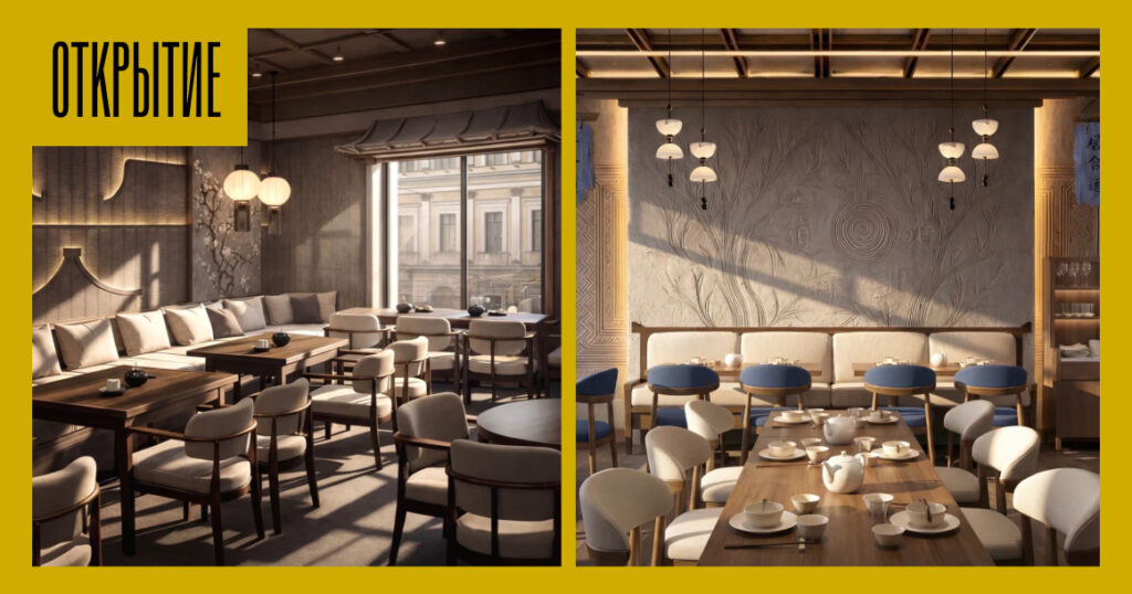 На сайте проект описывают как продолжение этой концепции: «гастробар, где паназиатская кухня превращается в личное путешествие» (посетителей там даже сравнивают со странниками). Интерьер, как можно судить по визуализациям, не кричаще азиатский, а весьма спокойный — в духе Японии. Много теплого дерева и в мебели, и в отделке. В зале мягкие диваны, светлые кресла, светильники с теплым светом. Есть открытая кухня и бар с полками и нишами, где расставлена керамика и посуда. А на стенах — графика с иероглифами.