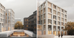 «Внутренней доминантой комплекса станет современный жилой особняк в 6 этажей. Концепция фасада отсылает к историческому прошлому участка: упорядоченный рисунок окон напоминает о декоре камергерских мундиров», — говорят в бюро.