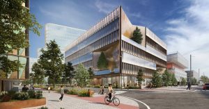 Кстати, на рендерах с видом сверху видно, что по соседству с новым офисом будет расположен тот самый паркинг, который «замаскировали» под листья с помощью металлокассет. Рендеры нам тоже недавно показывали и обещали, что его крышу также озеленят.