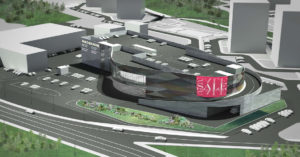 Фасады центра будут оформлены металлическими панелями, украшенными перфорированным и дополнительно нанесенным рисунком, а также медиаэкранами. Также предусмотрена возможность замены фасадных панелей в будущем дополнительными экранами.