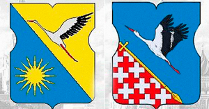 В официальном документе (его тоже в сети легко найти) расписаны эстетические достоинства нового герба. «На лазоревом поле — серебряный с червлеными клювом и лапами и черными концами перьев аист, косвенно летящий с воздетыми крыльями, ниже которого в перевязь уложено вписанное золотое копье острием вниз, древко которого увенчано равноконечным, уширенным, завершенным шариками крестом; ниже копья угол заткан косвенно чередующимися червлеными и серебряными равноконечными крестами», — повествуется в тексте.