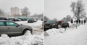 Каждую зиму окраина Крылатских холмов превращается в незаконную парковку, однако беспокоит это только простых людей.