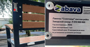Лавки делает фирма «Забава» (обратите внимание на логотип). Видимо, они любят развлекаться с названиями не меньше, чем покинувшая нас «Икеа». Так, например, у них на сайте есть лавочки «Катюша», «Беседа» или «Подружка». Это они делают лежаки, похожие на шезлонги, которые пару лет назад появились в парках и на набережных. Правда, название у этих шезлонгов почему-то не игривое — просто «Диван парковый». Скучно.