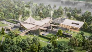 Интересна архитектура — проектировщики сразу сообщили, что взяли за основу идею «Дома прерии» классика американского зодчества Фрэнка Ллойда Райта. Сверху здание нового городка похоже на пагоду, с высоты человеческого роста оно напоминает корабль с лежащим на нем парусом — этот эффект дают вогнутые крыши блоков.
